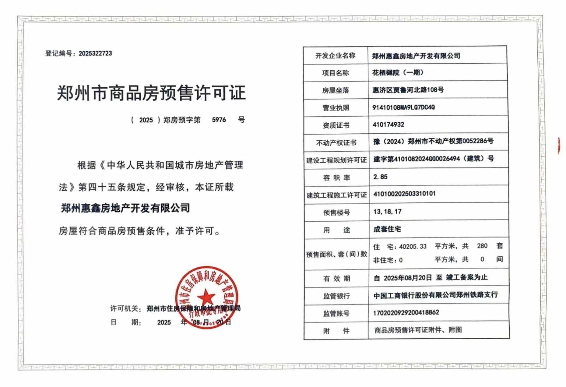 鐵建投城發·花棲樾取得13#、16#、17#、18#樓預售證